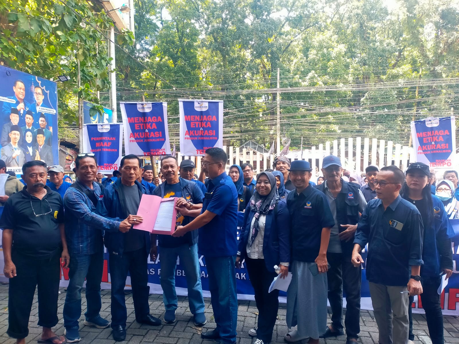 Aksi ini digelar, menyusul pemberitaan Majalah Tempo Edisi 13-16 April 2026, yang dinilai mendiskreditkan ketua Umum Partai Nasdem Surya Paloh, serta melecehkan martabat ketua partainya.